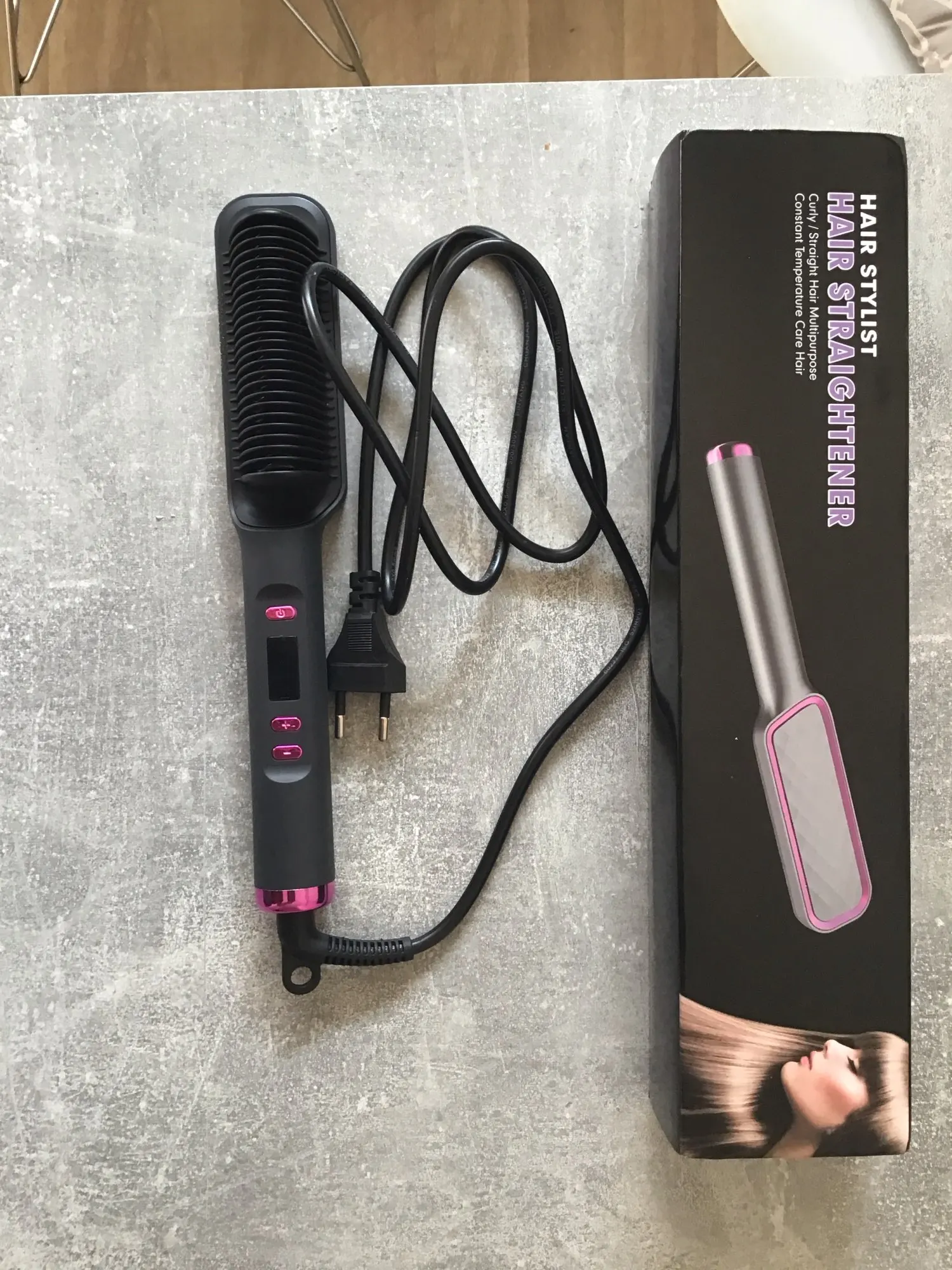 Achieve sleek, straight hair or bouncy curls in minutes with our 2-in-1 Ionic Hair Straightener & Curling Hot Brush. This dual-purpose styling tool combines a hot comb and curling tong with advanced negative ion technology to reduce frizz, lock in moisture, and leave your hair silky-smooth and shiny.